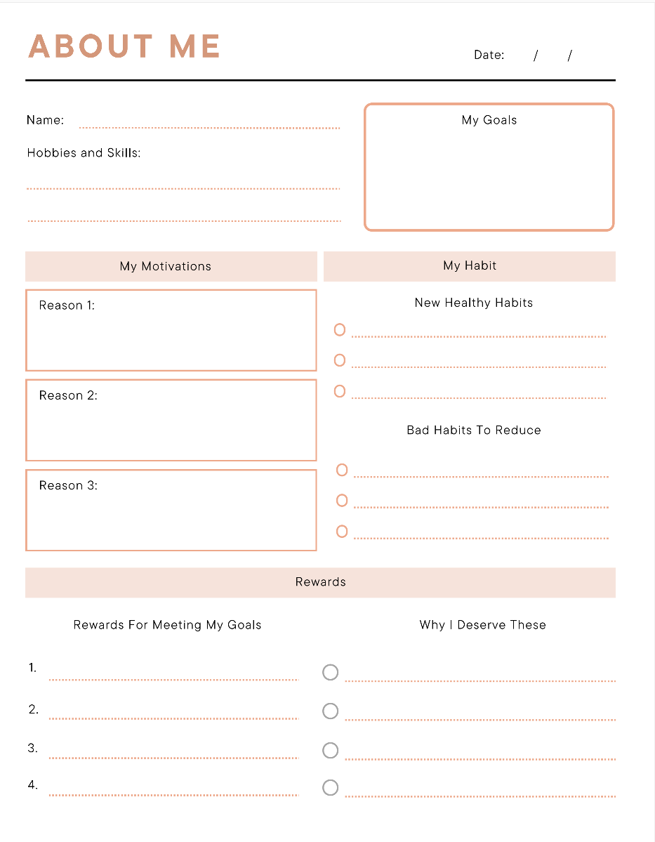 • Daily & Weekly Check-Ins – Track progress, recognize growth, and practice small steps toward prioritizing yourself.